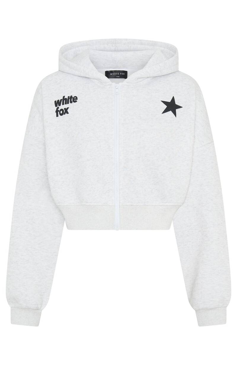Perfect for lounging or running errands, the From The Archives Charli Cropped Zip Front Hoodie in Grey Marle is here to keep you comfy. Featuring a centre front zip closure, elasticated ribbed cuffs & hem, hood, soft fleeced fabric for extra comfort, cropped length and puff print logo detailing side front and centre back.