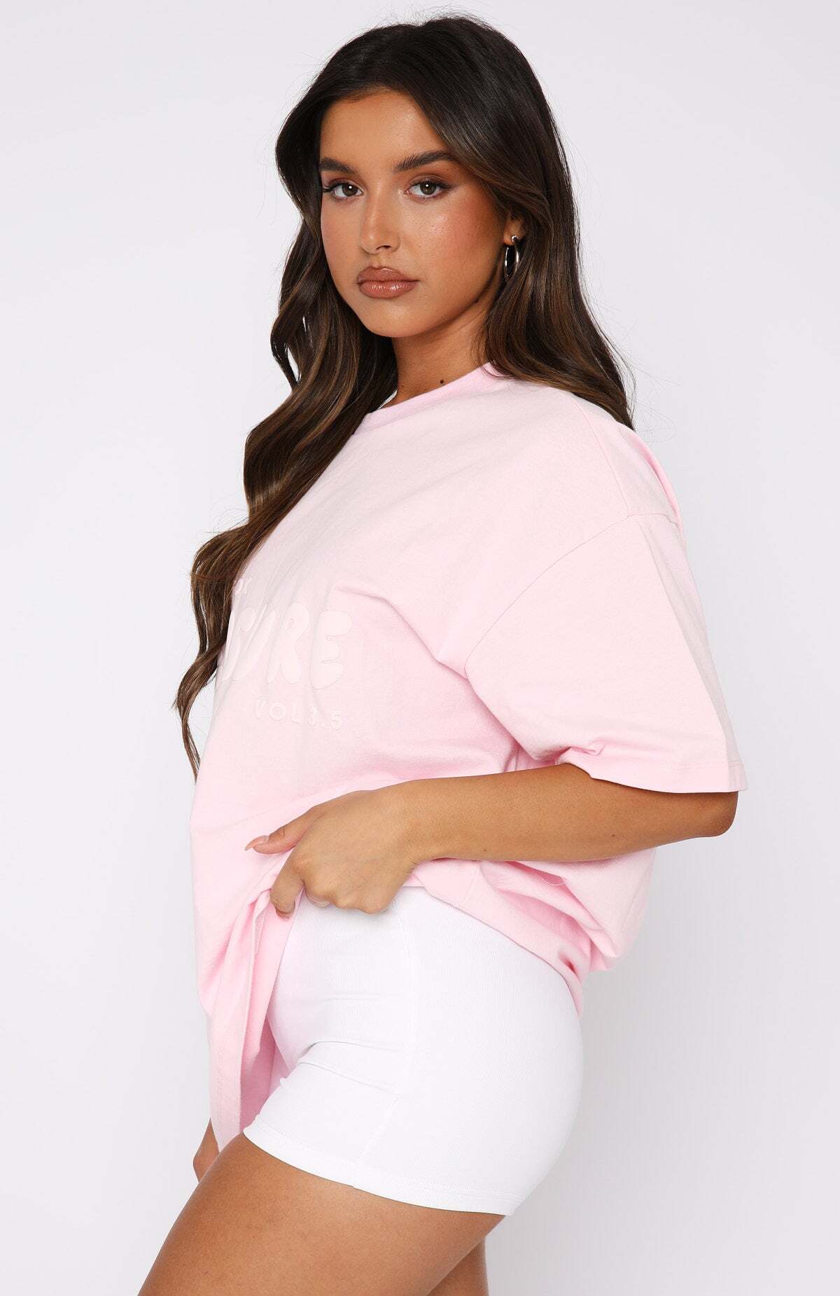 Switch up your stay at home look with the Leisure Series Oversized Tee in Posy. It is an oversized fit with slouch shoulders, round neckline, and puff print logo centre front. Pair with bike shorts and sneakers for the perfect chill day fit!