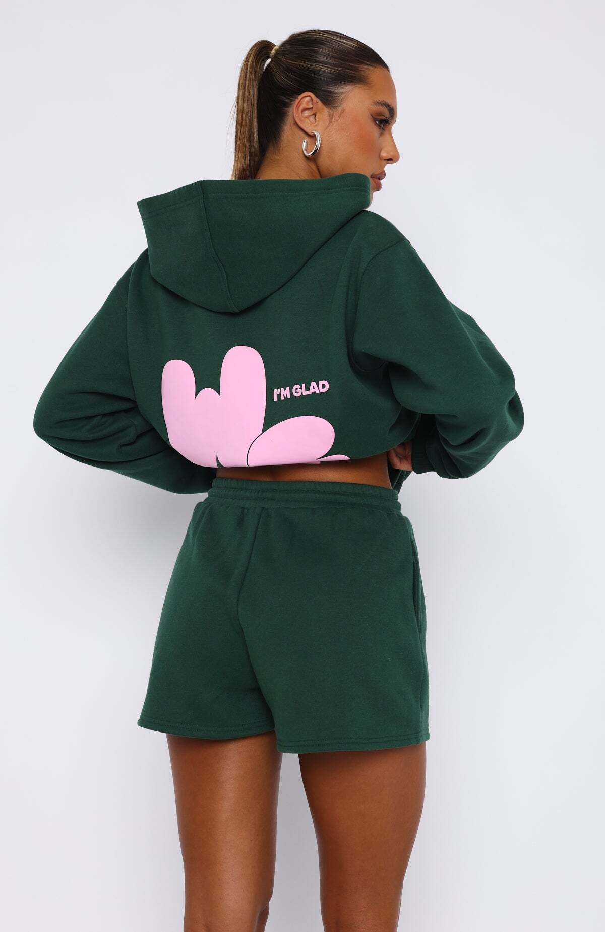 Stock up this winter season with the I'm Glad Lounge Shorts Forest Green.