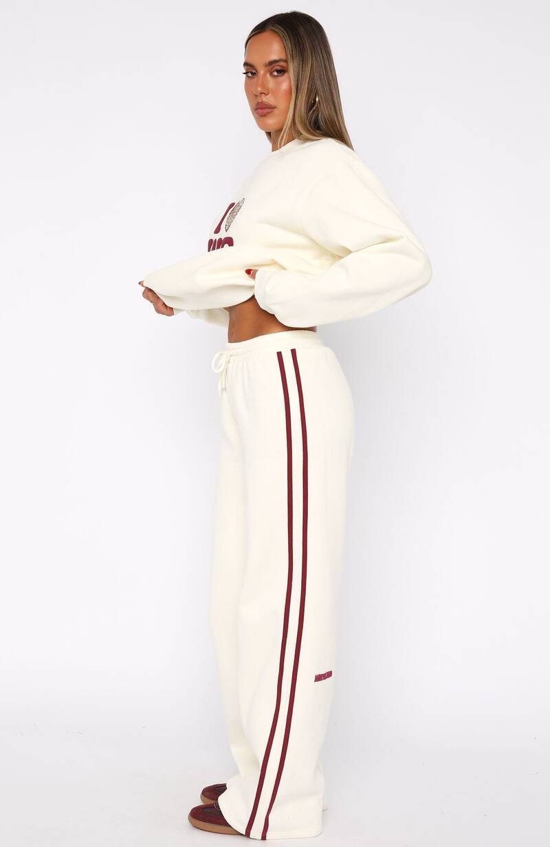 Get that effortlessly chilled vibe in the 11th Street Out & About Wide Leg Sweatpants Cake Batter. Features a thick elasticated waistband, lining, two side pockets, logo detailing on side leg, high rise fit and straight leg, flare design. Team with one of our 11th Street tees for a chill weekend look.
