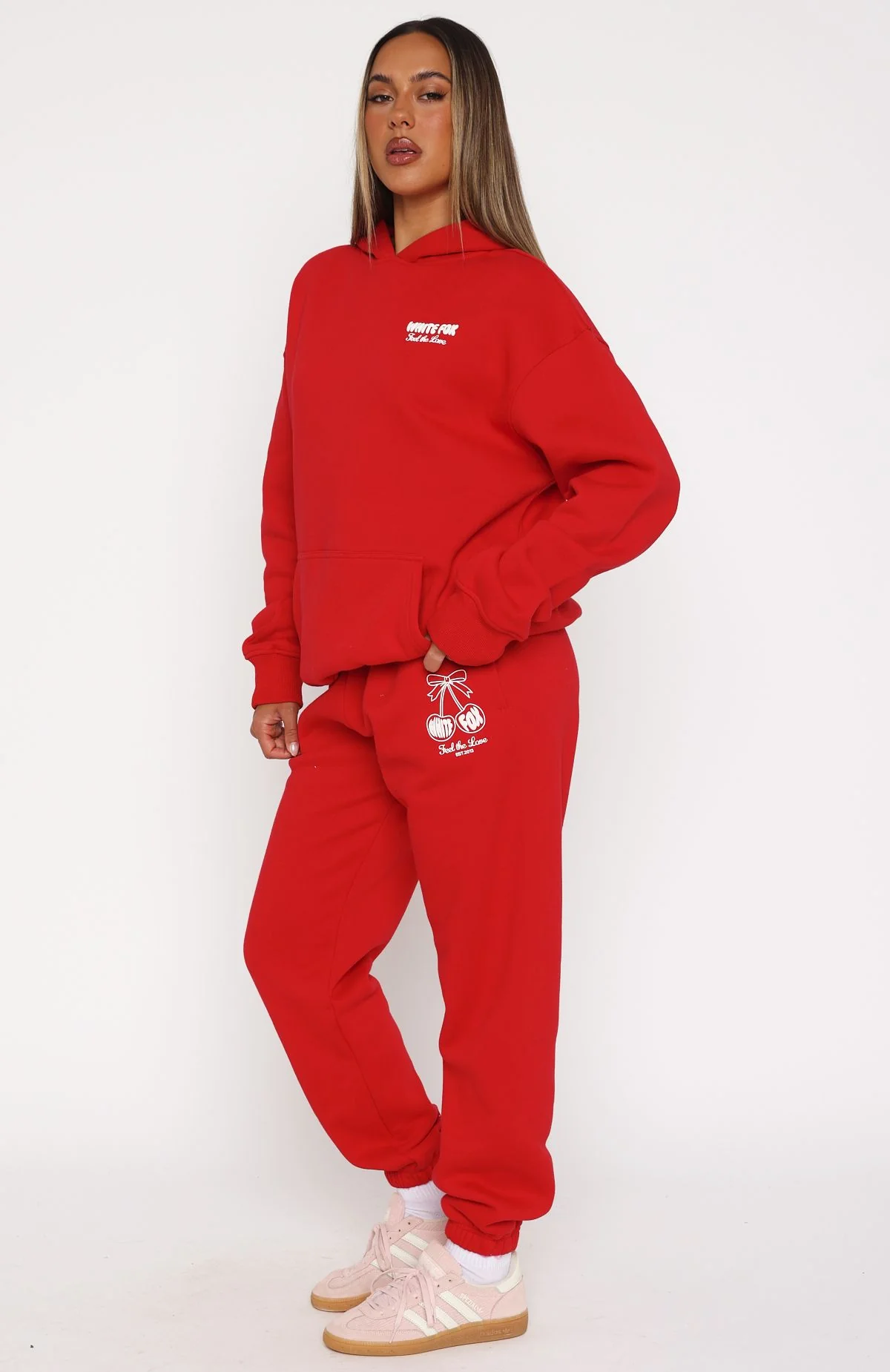 Say hello to love at first sight with our Love Of My Life Sweatpants Red! Featuring a high elasticated drawstring waistband, elasticated ankles, side pockets, soft fleece fabric for extra comfort and puff print logo on side of leg. Bundle up and pair with the matching Love Of My Life Oversized Hoodie Red!