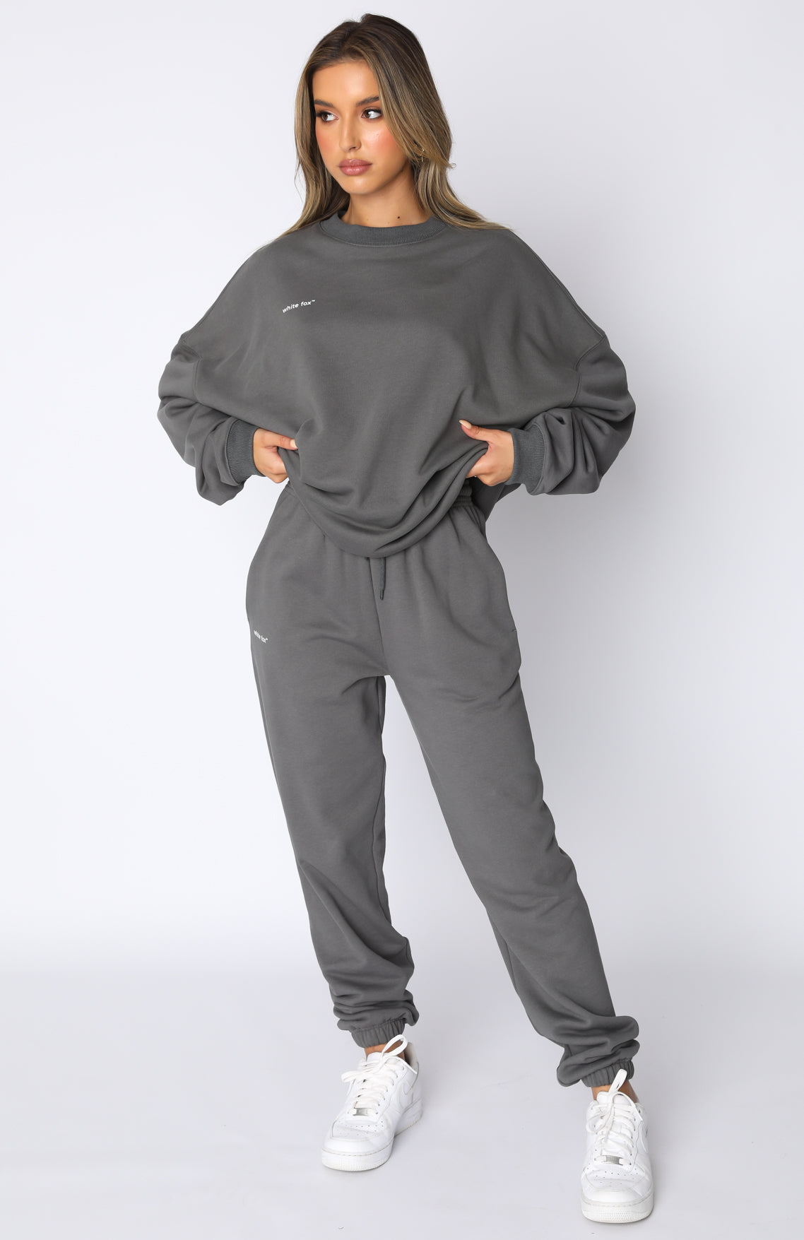 Treat your off-duty wardrobe to the Not An Issue Sweatpants in Slate. These unisex sweatpants feature an elasticated drawstring waistband, front pockets, soft feel loopback fabric and elasticated cuff ankles. Complete the tracksuit set with the matching Own The Moment Sweater and sneakers for the ultimate comfy and cosy outfit.
