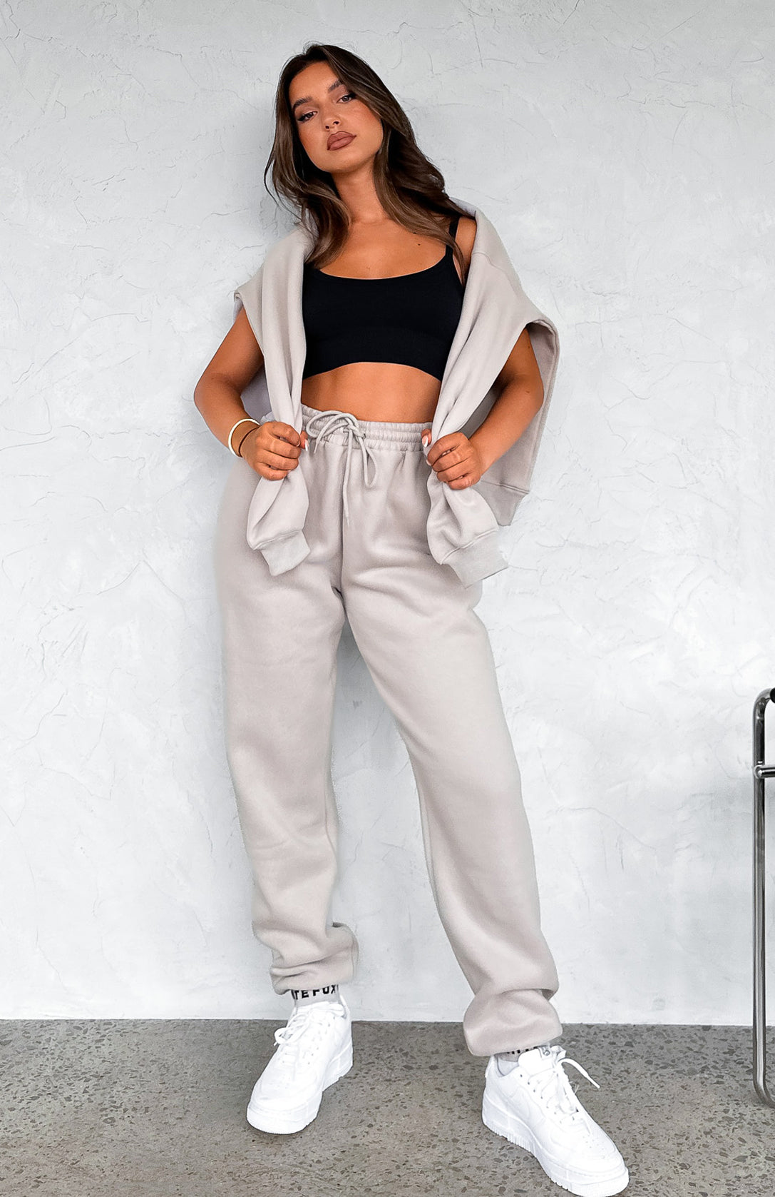 Style meets comfort with the Put It On Repeat Sweatpants in Lunar. Featuring a high elasticated drawstring waistband, elasticated ankles, side pockets, soft fleece fabric for extra comfort and print logo on side of leg. Pair with the matching Put It On Repeat Oversized Sweater and sneakers for a dreamy stay at home fit!